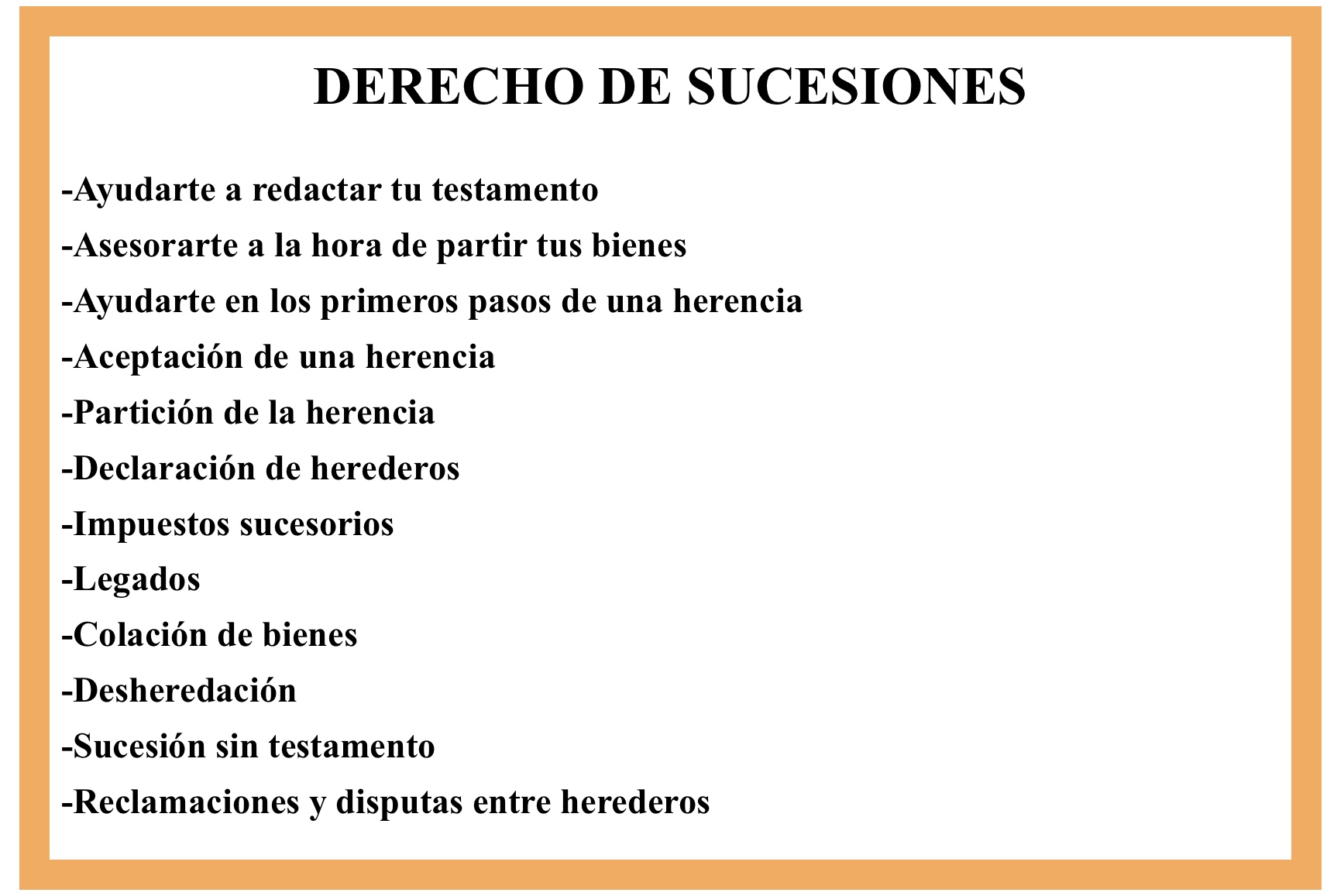 Puedo ayudarte a resolver tus problemas legales en asuntos que versen sobre el Derecho de Familia, así como en defender, proteger y reclamar tus derechos como consumidor y usuario, y acompañarte en toda la complejidad que implica una herencia con el máximo compromiso posible, buscando la manera más eficaz para la solución de los conflictos que puedas tener. Puedes contactar conmigo rellenando el siguiente formulario.